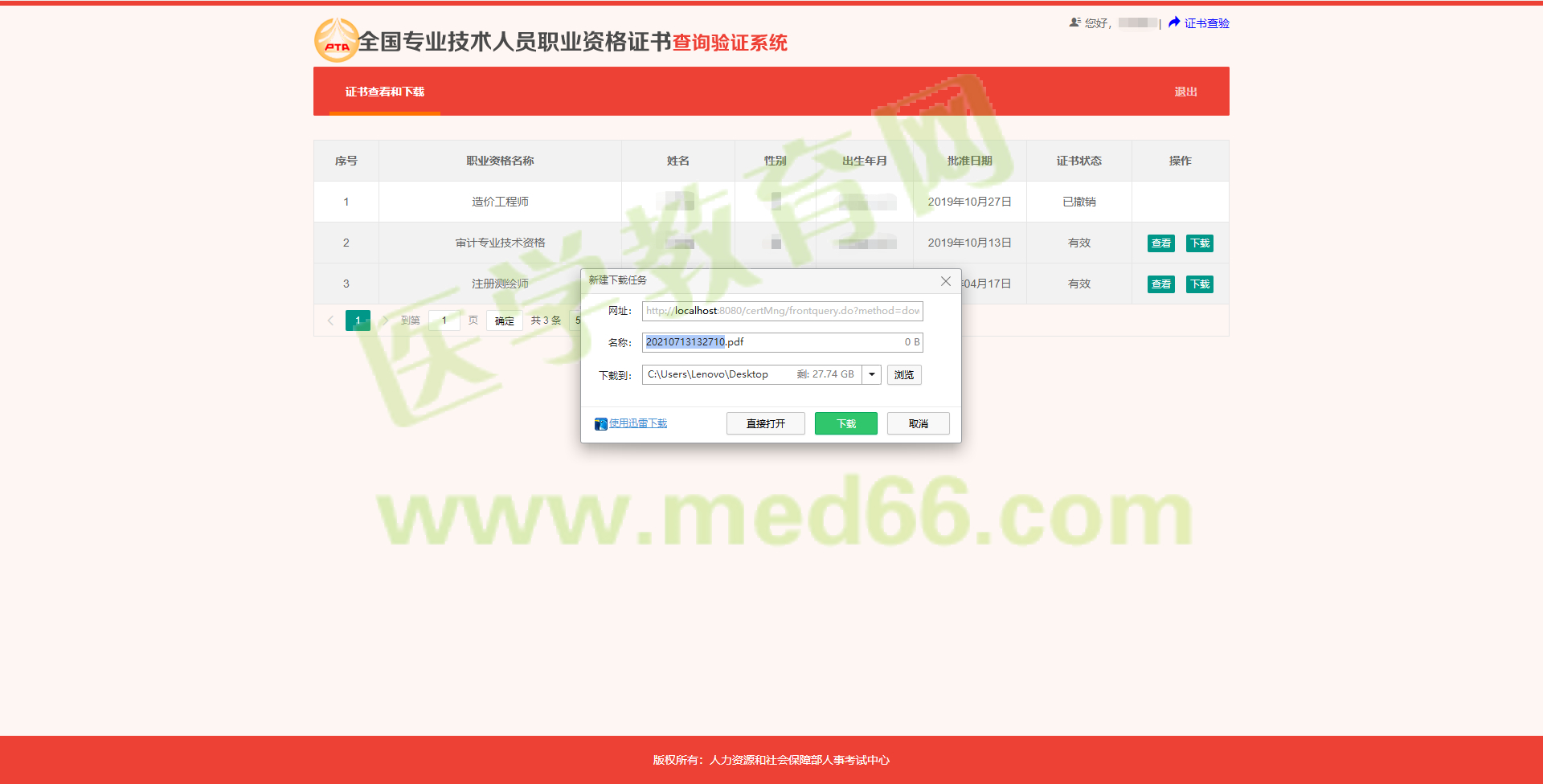 点击[同意]按钮后,即可进入证书查看和下载页面。