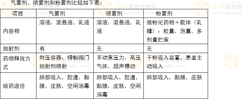 2.【问】《相关专业知识》中气雾剂、喷雾剂和粉雾剂内容较多,且平时接触较少,如何快速记住相关知识点?