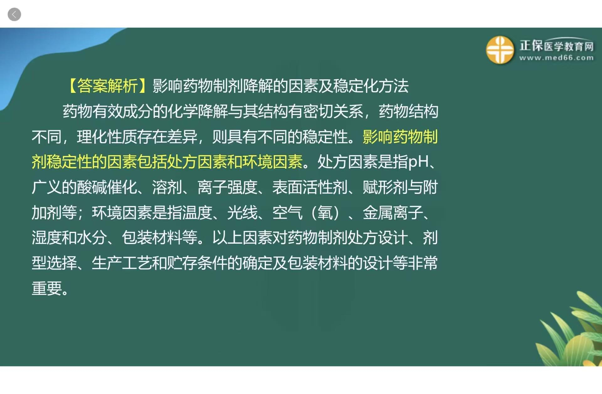 2024主管药师《相关专业知识》考试考点7:影响药物制剂稳定性的因素