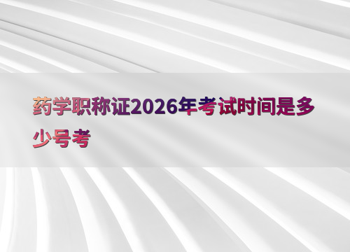 药学职称2026年考试时间安排