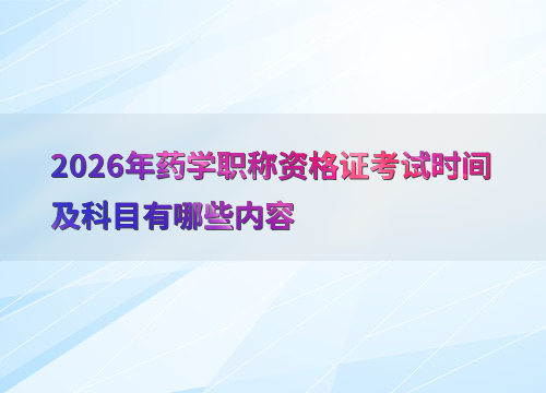 2026年药学职称考试分为初级药士/药师与主管药师两类,初级考试时间为4月26日全天,主管药师为4月18日全天。