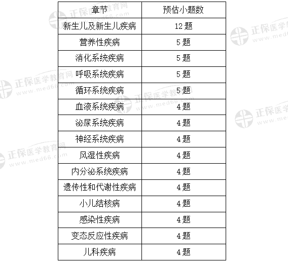 为了帮助各位2022年儿科主治医师考生更好的复习备考,医学教育网整理专门整理了2022儿科主治医师考试《专业实践能力》各章节预估分值,各位考生快快收藏起来吧! 【医学教育网原创·转载请注明出处】