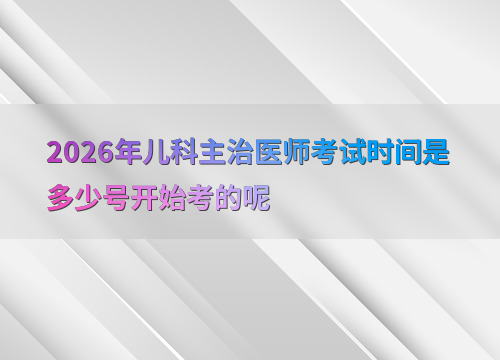2026年儿科主治医师考试定于4月18日举行,全天连续进行四个科目考试,无休息时间。