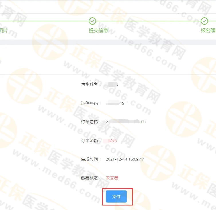 完成后“缴费”节点变为绿色,表示报名成功。