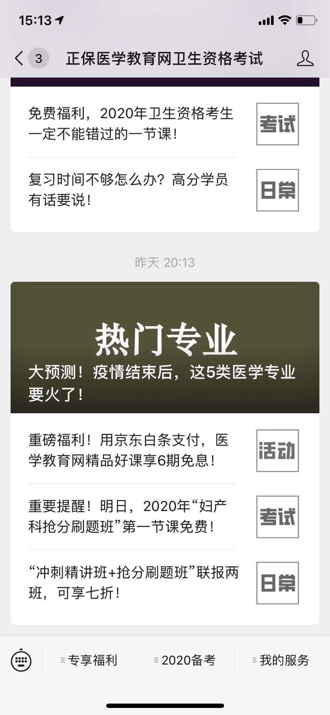 订阅"2020卫生资格考试时间"提醒功能