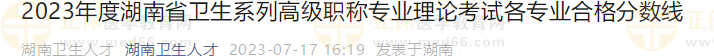 2023年度湖南省卫生系列高级职称专业理论考试成绩已开放查询,现将各专业合格分数线公布如下: