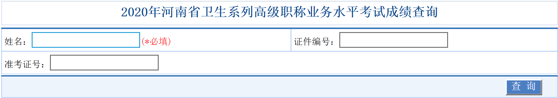 2020年河南省卫生系列高级职称业务水平考试成绩查询入口已开通: