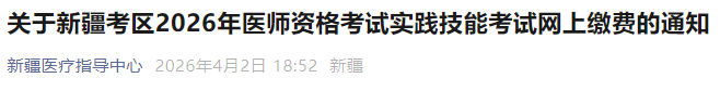 官方速报!新疆2026年公卫医师考试实践技能缴费入口已开通!以下为新疆考区官方提醒,请相关考生仔细查看,按时完成技能缴费!