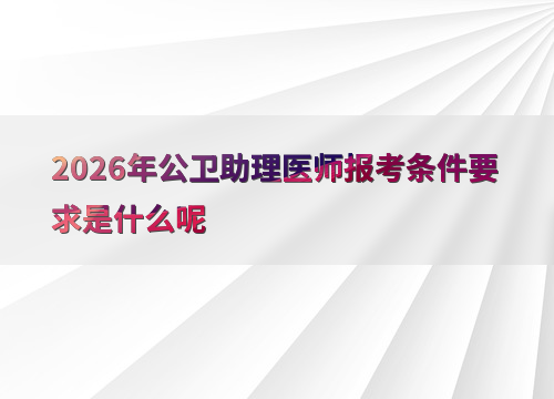 2026年公卫助理医师考试报名预计在1-2月进行,考生需满足学历和试用期要求。