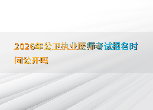 2026年公卫执业医师考试报名时间预计在1月至2月之间,参考往年安排(如2025年为2月8日至2月21日),考生应密切关注国家医学考试网公告。