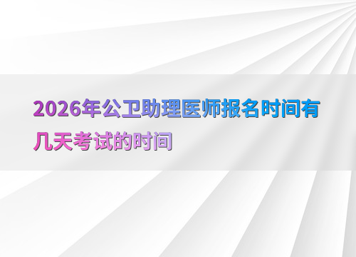 2026年公卫助理医师考试报名预计在1月至2月进行,具体时间以国家医学考试网公告为准。