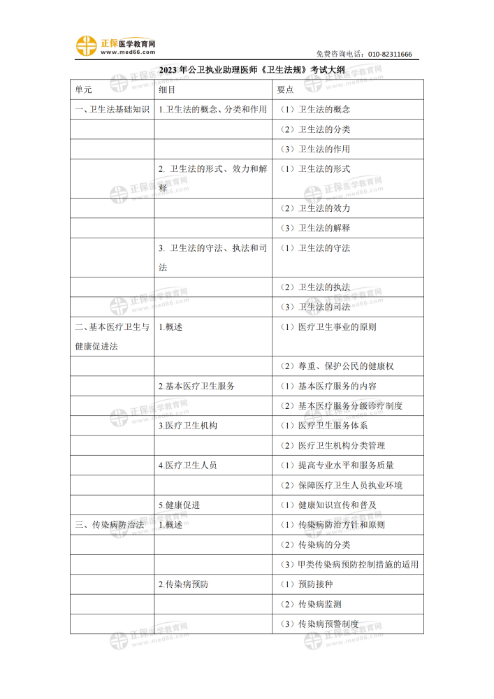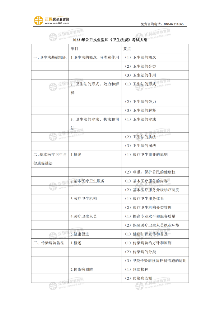 2023年公卫执业医师考试综合笔试《卫生法规》考试大纲免费下载