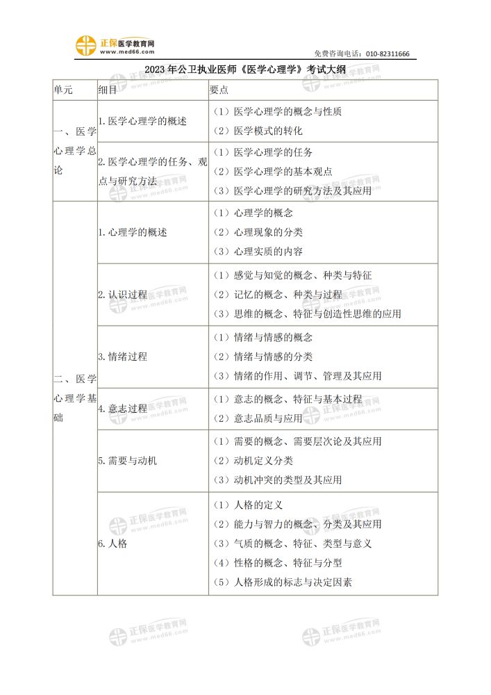 2024年公卫执业医师《医学心理学》考试大纲免费下载