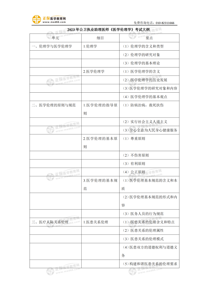 2023年公卫执业助理医师《医学伦理学》考试大纲免费下载