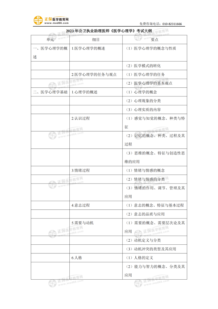 2023年公卫助理医师考试综合笔试《医学心理学》考试大纲(完整版)下载