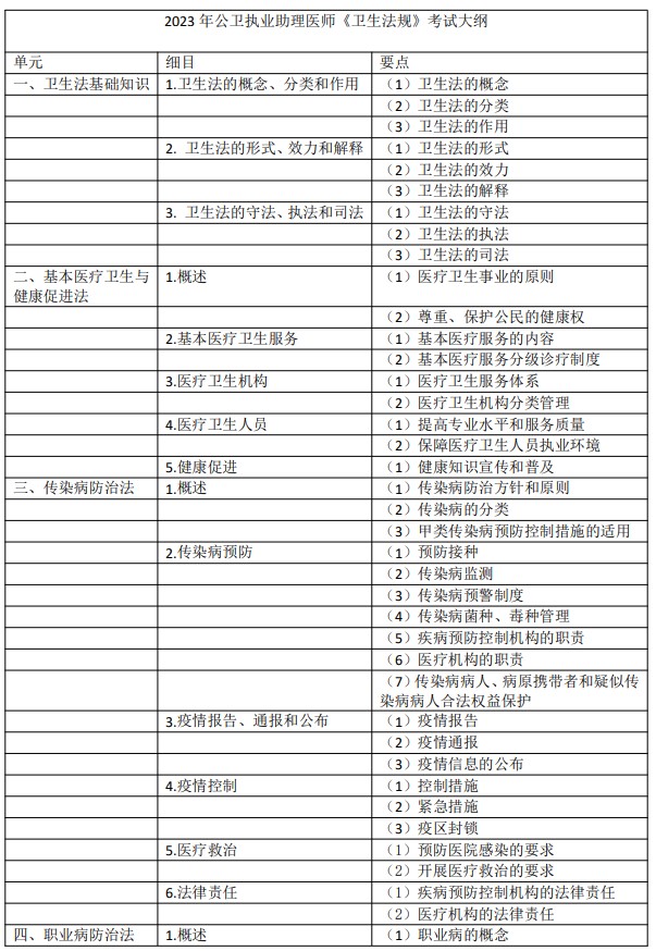 2023年公卫助理医师考试综合笔试《卫生法规》考试大纲(完整版)下载