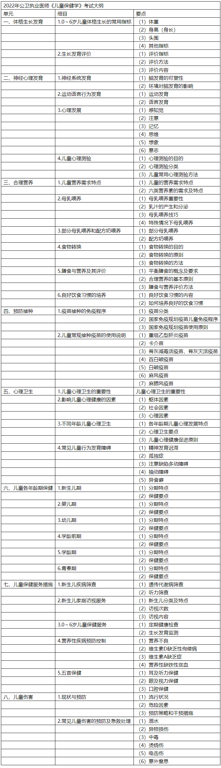 大纲下载: 2022年公卫执业医师《儿童保健学》考试大纲