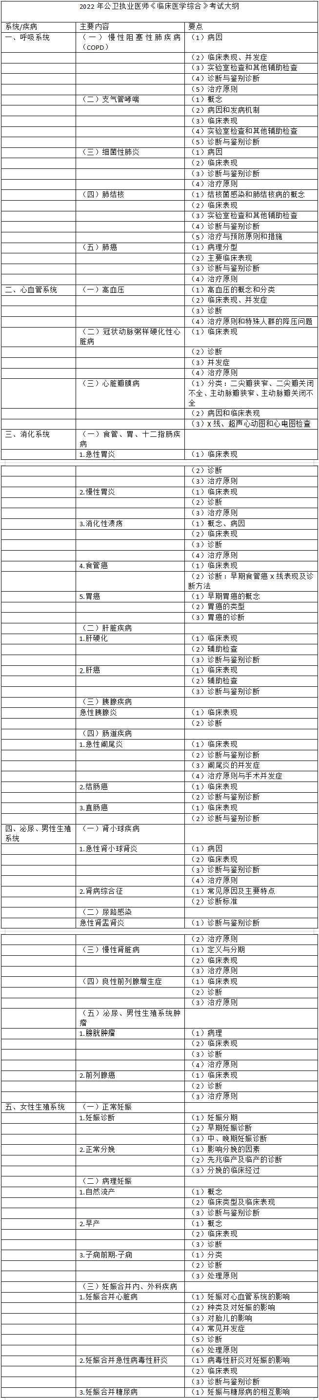 2022年公卫执业医师《临床医学综合》大纲