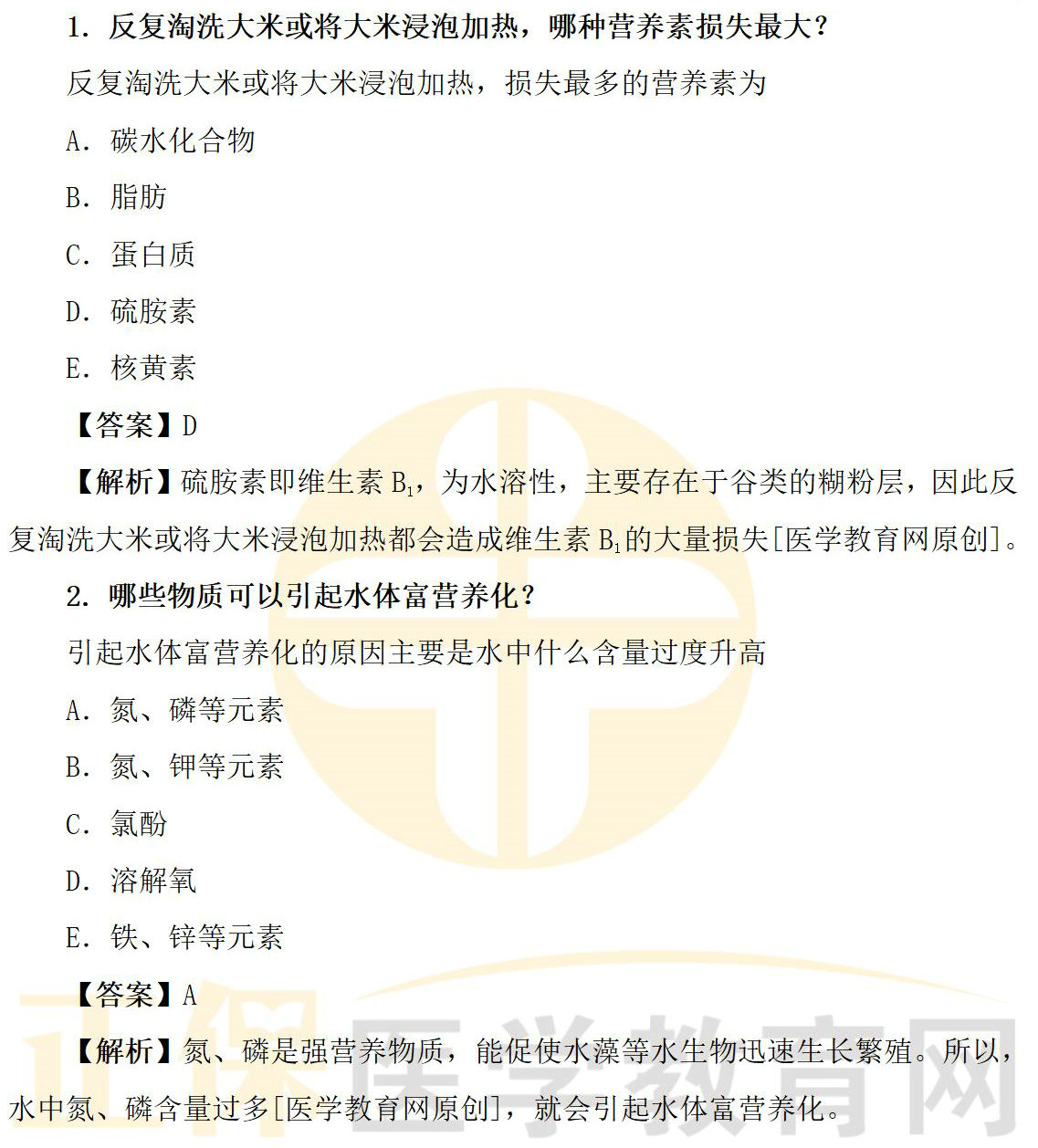 1.反复淘洗大米或将大米浸泡加热,哪种营养素损失最大?