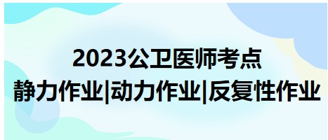 2023公卫医师备考要养成每日规律行复习的好习惯,这样才能稳步提升应试实力。本篇主要跟大家一起学习了静力作业|动力作业|反复性作业。想要解锁更多备考技巧和高效率经验?医学教育网推荐大家《超值精品班》,全面系统梳理考纲章节,辅以备考技巧点拨以及配套练习题学练结合,跟着老师走复习有方向!