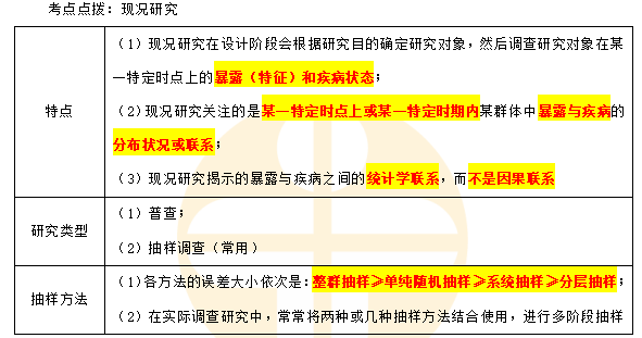 公卫医师考试:现况研究考点点拨+经典习题如下,2022年公卫执业医师考试复习如火如荼,你还没有加入备考大军吗?立即跟着小编开启公卫执业医师考试精选考点的学习吧!金题点睛直播班课表>>