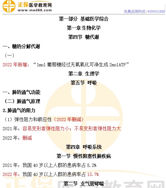 公卫执业医师考试第六章呼吸系统教材变化标注【下载word】