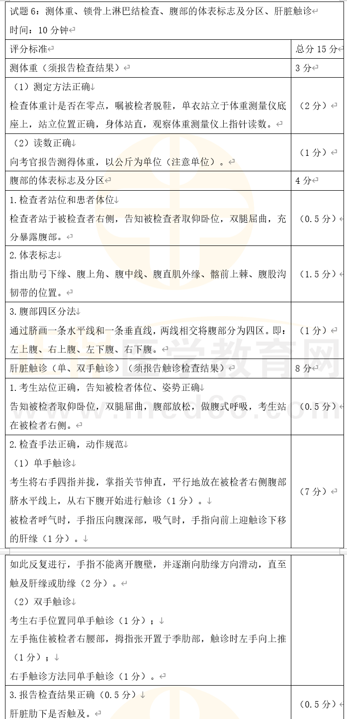 2022年公卫医师实践技能「体格检查」考前模拟卷6(含评分标准)如下,2022年公卫执业医师实践技能考试在即,医学教育网整理了实践技能考前指导手册(查看活动详情>>),包含技能各站精选模拟试题,购买2022年公卫执业医师无忧实验班,赠送价值480元的技能特色班,技能冲刺必备>>