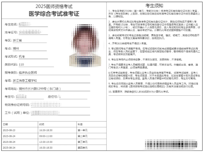考生注意!浙江湖州2025年医师资格综合笔试考场安排已出!请相关考生及时查看官方通知,按时打印准考证,提前确认好考场安排及考生须知!