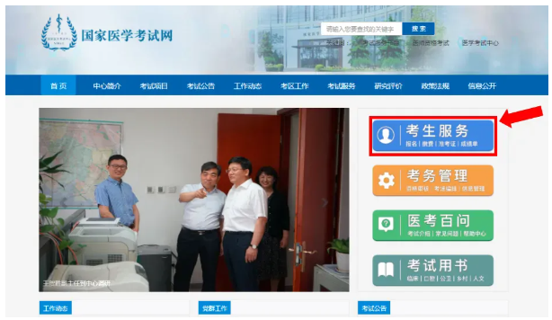 第一步:进入国家医学考试网点击“考生服务”。