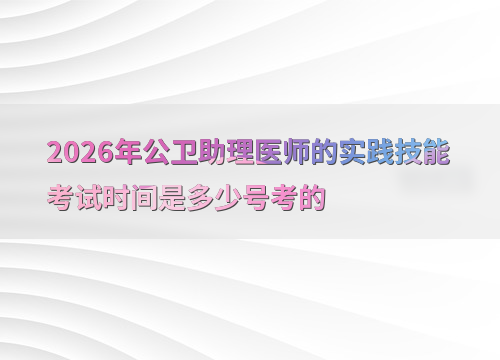 2026年公卫助理医师实践技能考试定于6月6日至7日举行,具体考试日期和地点以准考证信息为准。