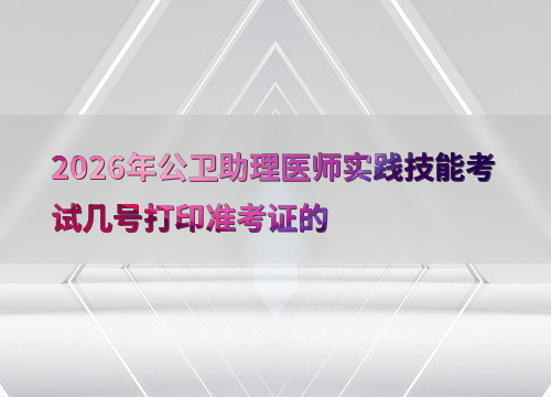 2026年公卫助理医师实践技能考试定于6月6日至7日举行,准考证打印时间因地区而异,通常在考前1-2周开放打印。