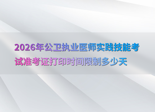 2026年公卫执业医师实践技能考试定于6月6日至7日举行,准考证打印时间因地区而异,通常在考前1-2周开放。