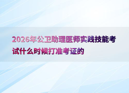2026年公卫助理医师实践技能考试定于6月6日至7日举行,准考证打印时间因地区而异,通常在考前1-2周开放。