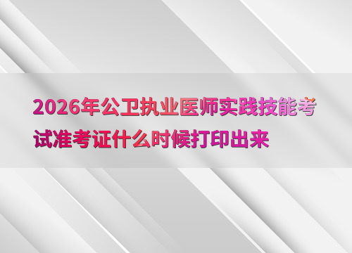 2026年公卫执业医师实践技能考试定于6月6日至7日举行,准考证打印时间因地区而异,通常在考前1-2周开放。