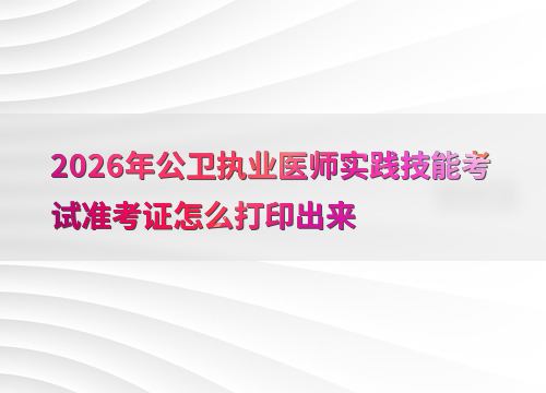 2026年公卫执业医师实践技能考试定于6月6日至7日举行,准考证打印时间因地区而异,通常在考前1-2周开放。