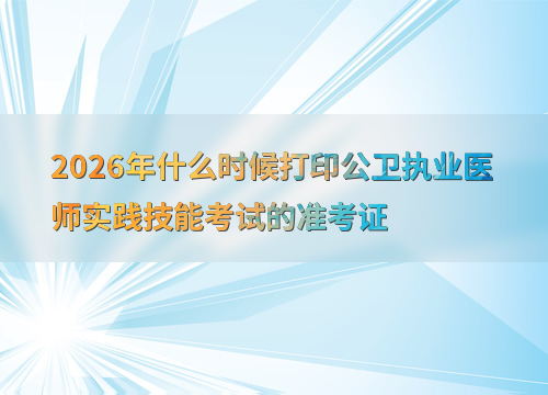 2026年公卫执业医师实践技能考试定于6月6日至7日举行,准考证打印时间因地区而异,通常在考前1-2周开放。