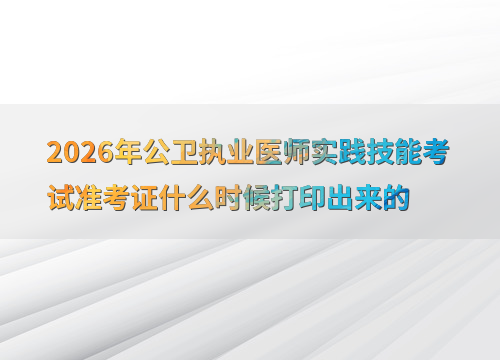 2026年公卫执业医师实践技能考试准考证打印时间因地区而异,一般在考前1-2周开放打印,考生需登录国家医学考试中心官网完成操作。