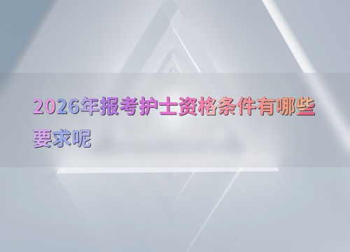2026年报考护士资格需满足全日制3年以上护理或助产专业学习,并在教学或综合医院完成8个月以上临床实习,取得相应学历证书。