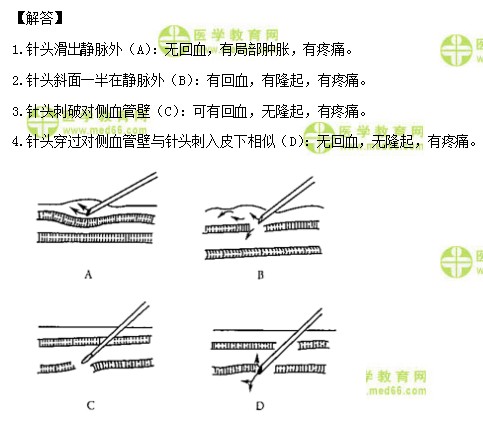 5.【问题】针头完全滑出血管外、针头穿过对侧血管壁、针头斜面一半在静脉外、针头刺入皮下的判断标准是什么,有点分不太清楚?