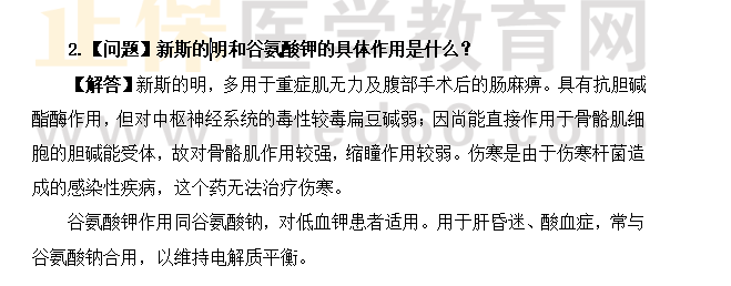 2.【问题】新斯的明和谷氨酸钾的具体作用是什么?