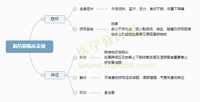 以上就是小编为大家整理的关于“肺结核临床表现-护士资格考试常见考点”的内容,希望对大家有所帮助,更多2022护士考试相关资讯请关注医学教育网护士栏目!