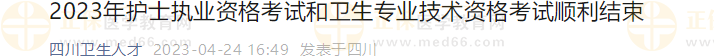 四川卫生人才发布2023年护士执业资格考试和卫生专业技术资格考试顺利结束通知,医学教育网整理具体内容如下: