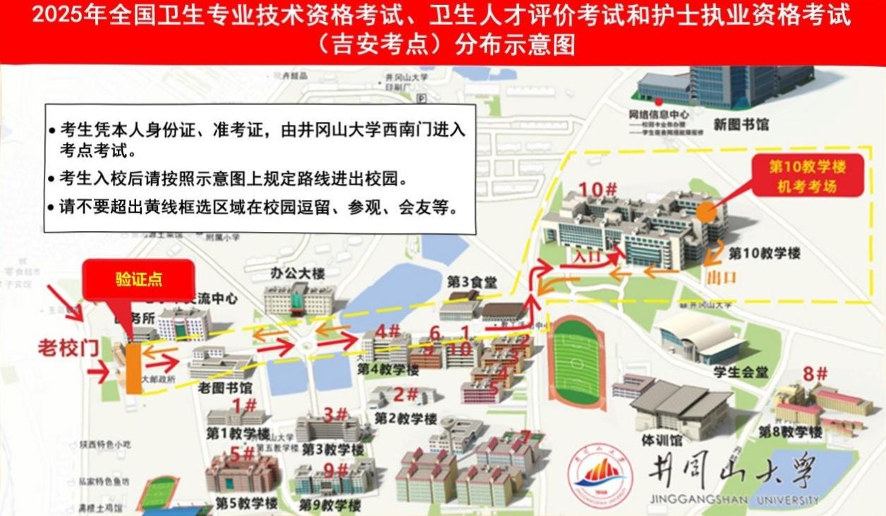 考 场:井冈山大学十号楼C305、C306、C309、C313、C315、C316、C405、C406、C409、C413、C414(共11个试室)