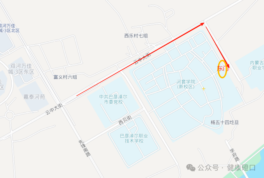 考场设在河套学院双河校区(临河区双河镇云中大街)(具体地点以准考证为主),参加考试的考生须从河套学院东门入场。请各位考生乘坐公共交通(5路公交)、亲友驾车(即停即走)等方式出行,并提前抵达考场。禁止考生车辆、考试无关人员及各类社会车辆进入校园。
