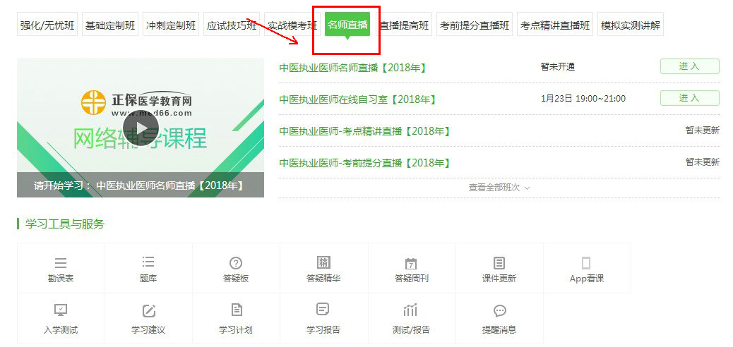 在医学教育网首页://www.med66.com/登录账号后进入“我的网校我的家”点击“专业师资直播”有直播课的列表页;