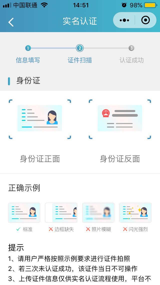 第三步:拍摄清晰的本人身份证正、反面照片并上传;