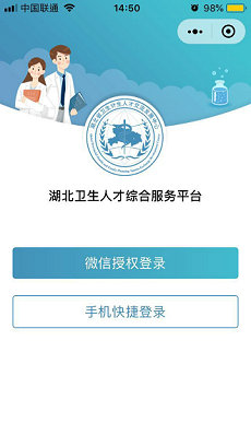 第一步:在手机微信上搜索“湖北卫生人才”小程序,用您的手机号或微信号进行授权登录;
