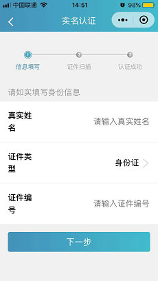 第二步:在认证界面输入您的真实姓名及身份证号;