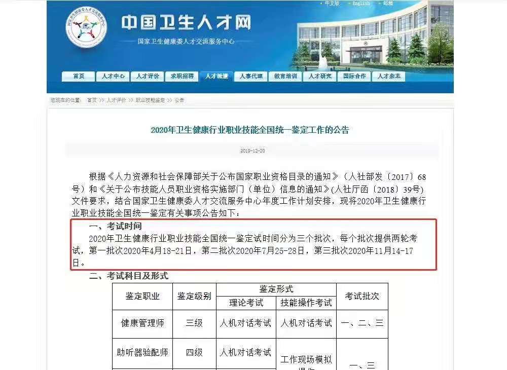 2020年三级健康管理师考试考期安排变化