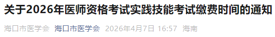 4月8日结束!海南海口2026年口腔执业医师技能缴费马上截止!以下为海南海口考点官方提醒,请相关考生仔细查看,按时完成技能缴费!